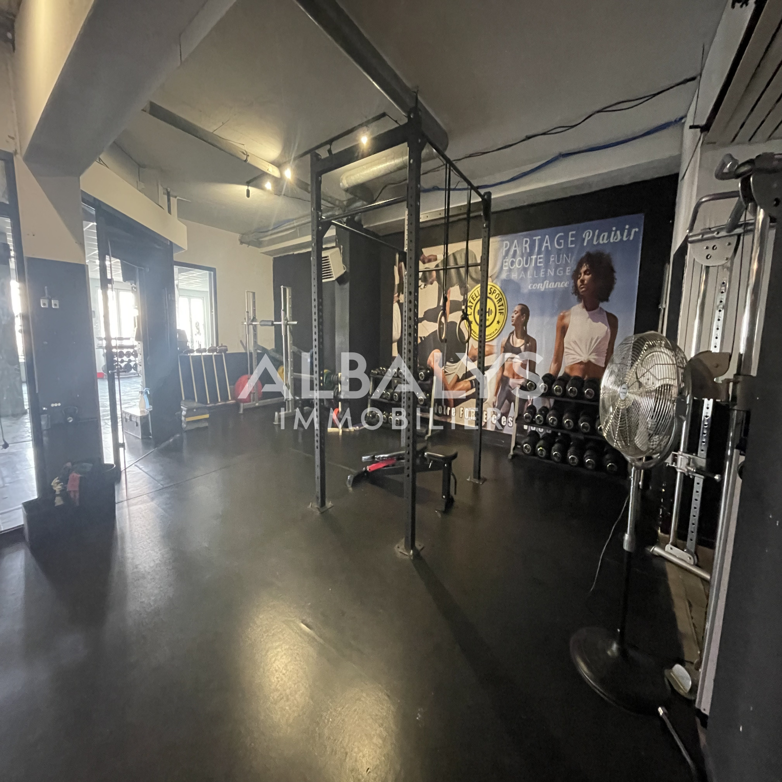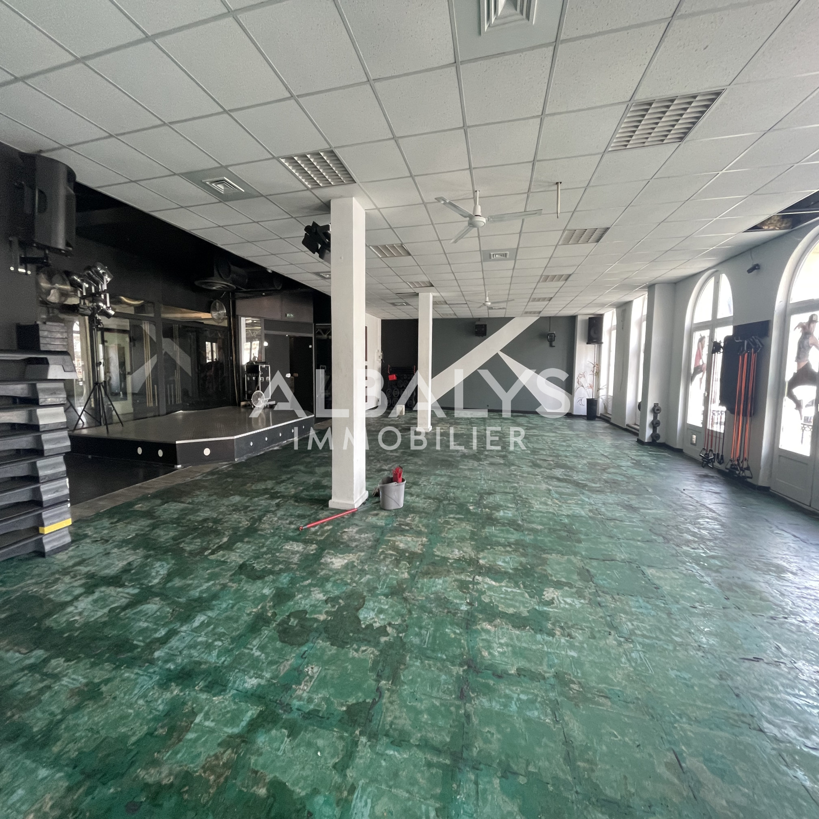 Sur la place de la mairie, au 1er étage, découvrez ce local d'environ 370 m2, anciennement utilisé comme salle de sport, il se compose d'un accueil, 2 vestiaires, un bureau et deux grandes salles.