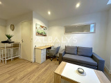 Il offre une chambre confortable avec salle d’eau privative et placard, une cuisine ouverte sur un coin repas, un espace bureau et un salon.