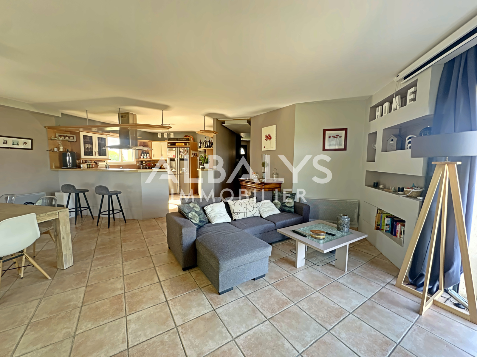 À l’intérieur, la maison propose une organisation fonctionnelle et chaleureuse. La cuisine ouverte sur le séjour crée un espace de vie lumineux et convivial. Les quatre chambres, toutes équipées de placards, permettent d’accueillir confortablement une famille ou d’aménager un espace de télétravail. Une salle d’eau complète l’ensemble.