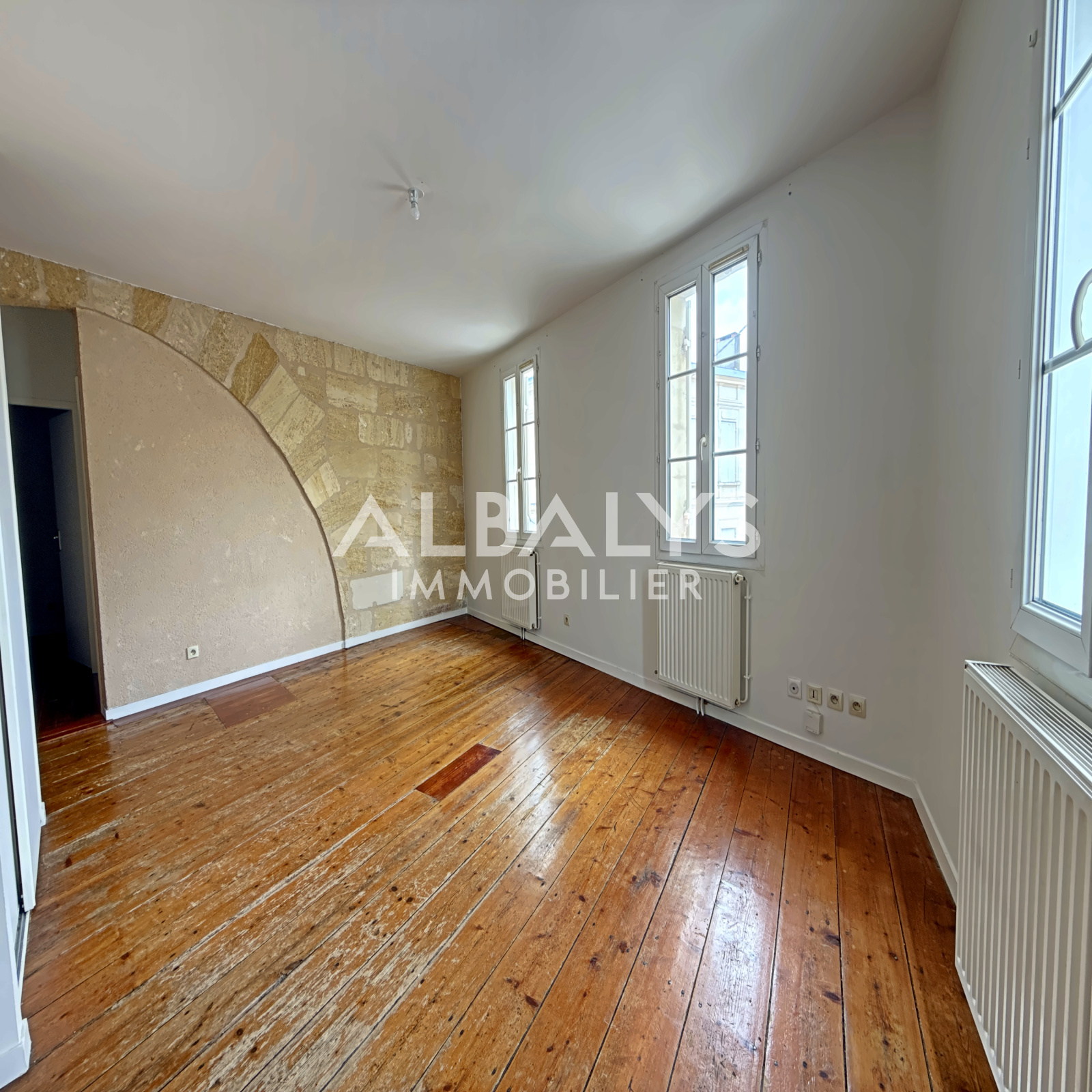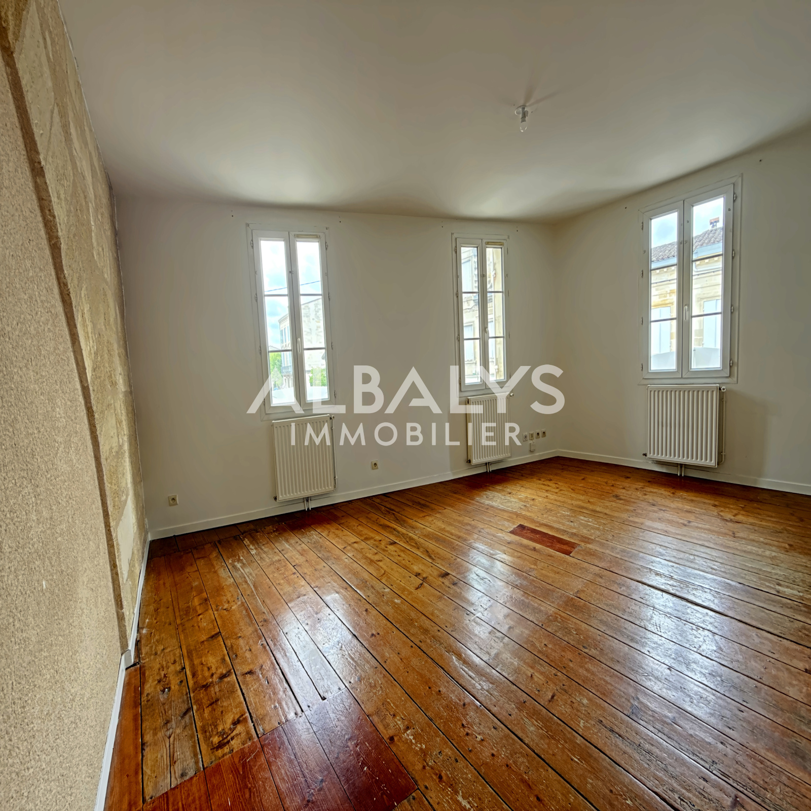 Dans un immeuble en pierre, situé au 1er étage, venez découvrir ce joli T3 d'environ 55m2 comprenant une entrée avec un wc séparé, un grand séjour avec un coin cuisine, 2 chambres avec placards et une salle d'eau.