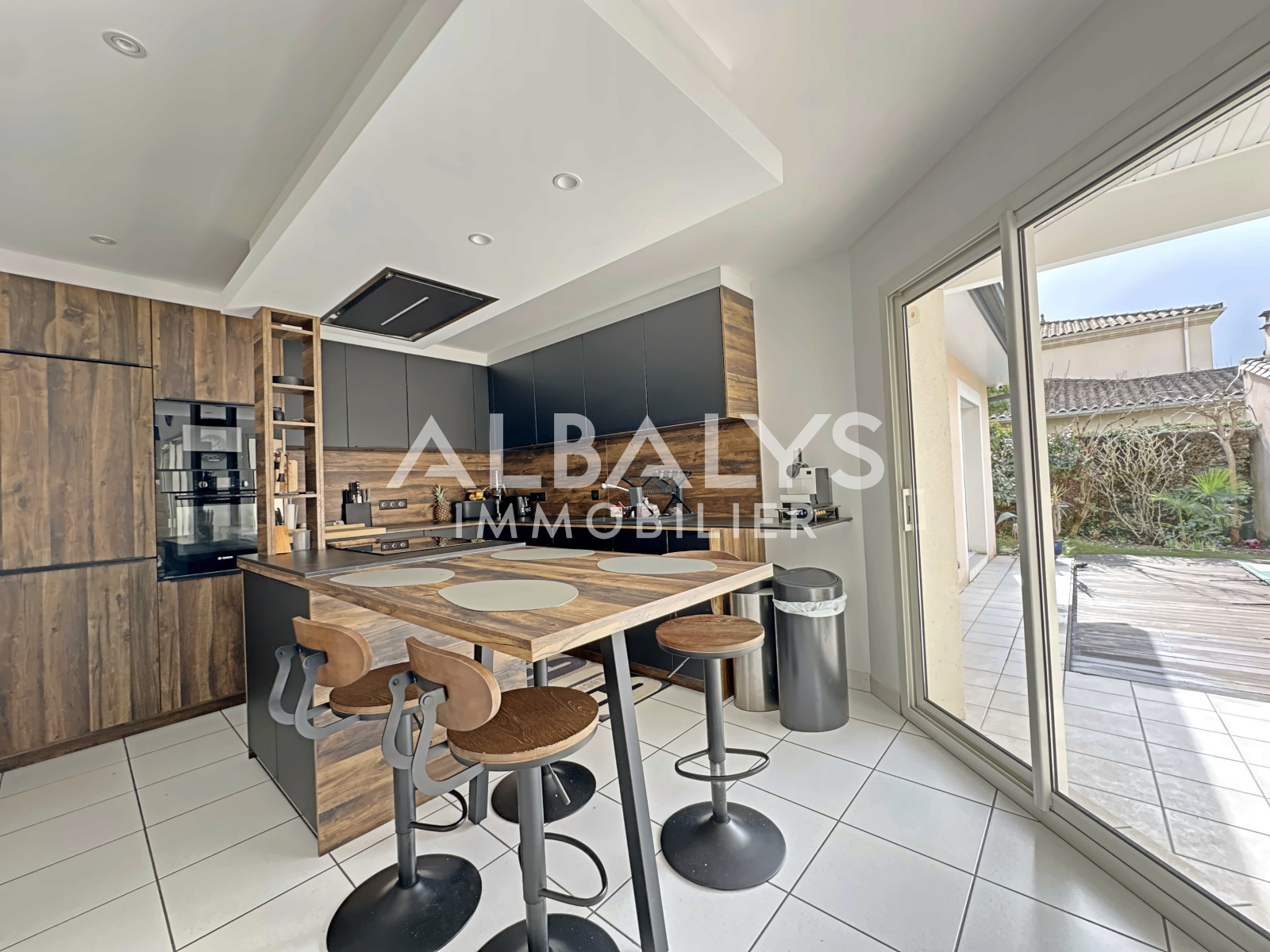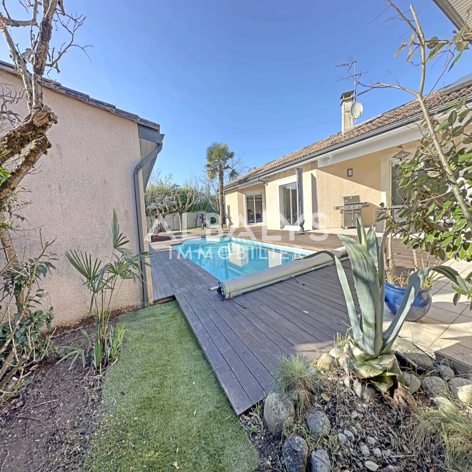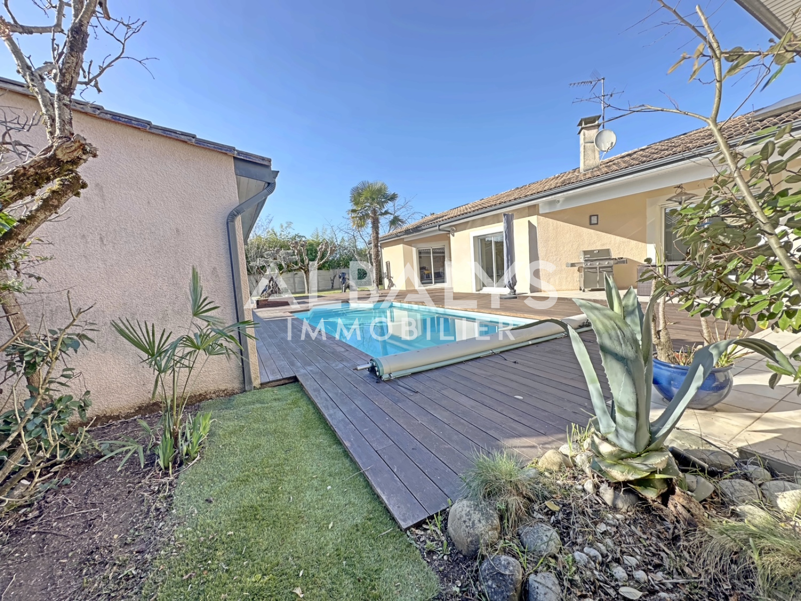 Le tout est agrémenté d'une terrasse sans vis-à-vis d'environ 150 m2, d'une piscine chauffée, d'une cuisine d'été, d'un pool-house et d'un jardin clos et arboré d'environ 1 200m2 avec parking pavé et garage attenant carrelé et isolé.