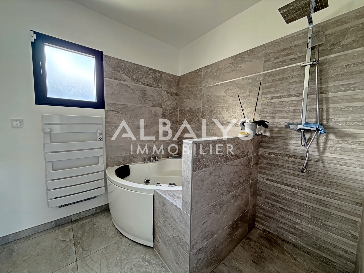 Le tout est agrémenté d'un très bel espace piscine avec grange terrasse, cuisine d'été et pool-house, ainsi que d'un garagre double et d'un jardin clos et arboré d'environ 1 200m2.