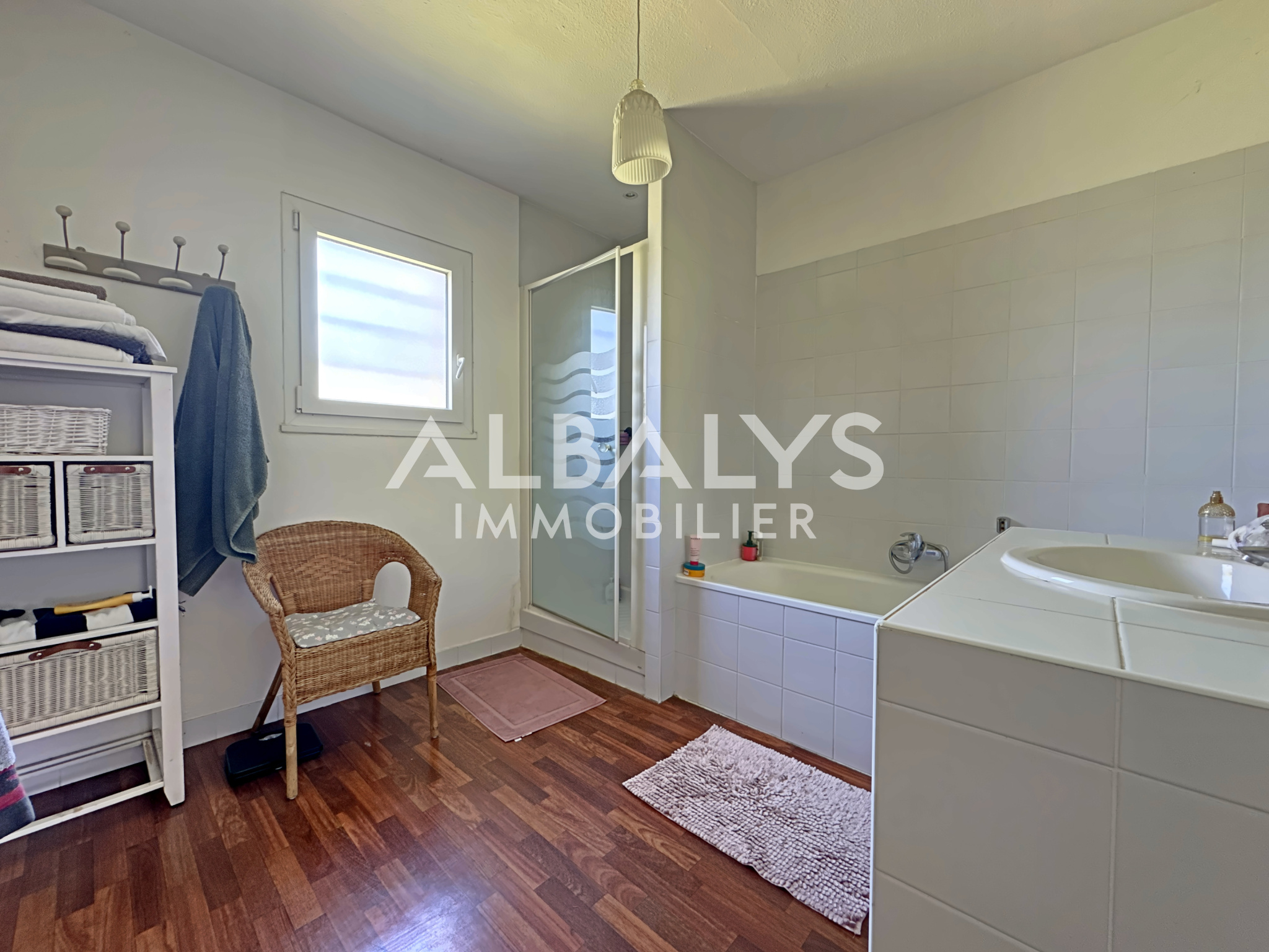 Sur l'axe LIBOURNE-BORDEAUX, venez visiter cette maison de plain-pied d'environ 106m2 comprenant une entrée avec un cellier, une pièce de vie ouverte sur une grande cuisine.