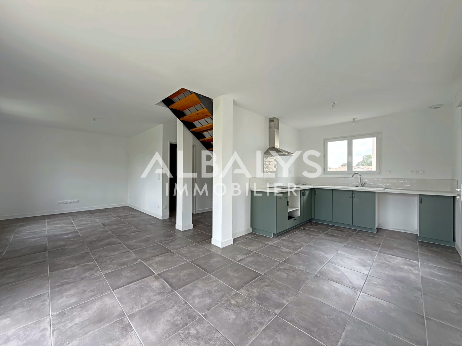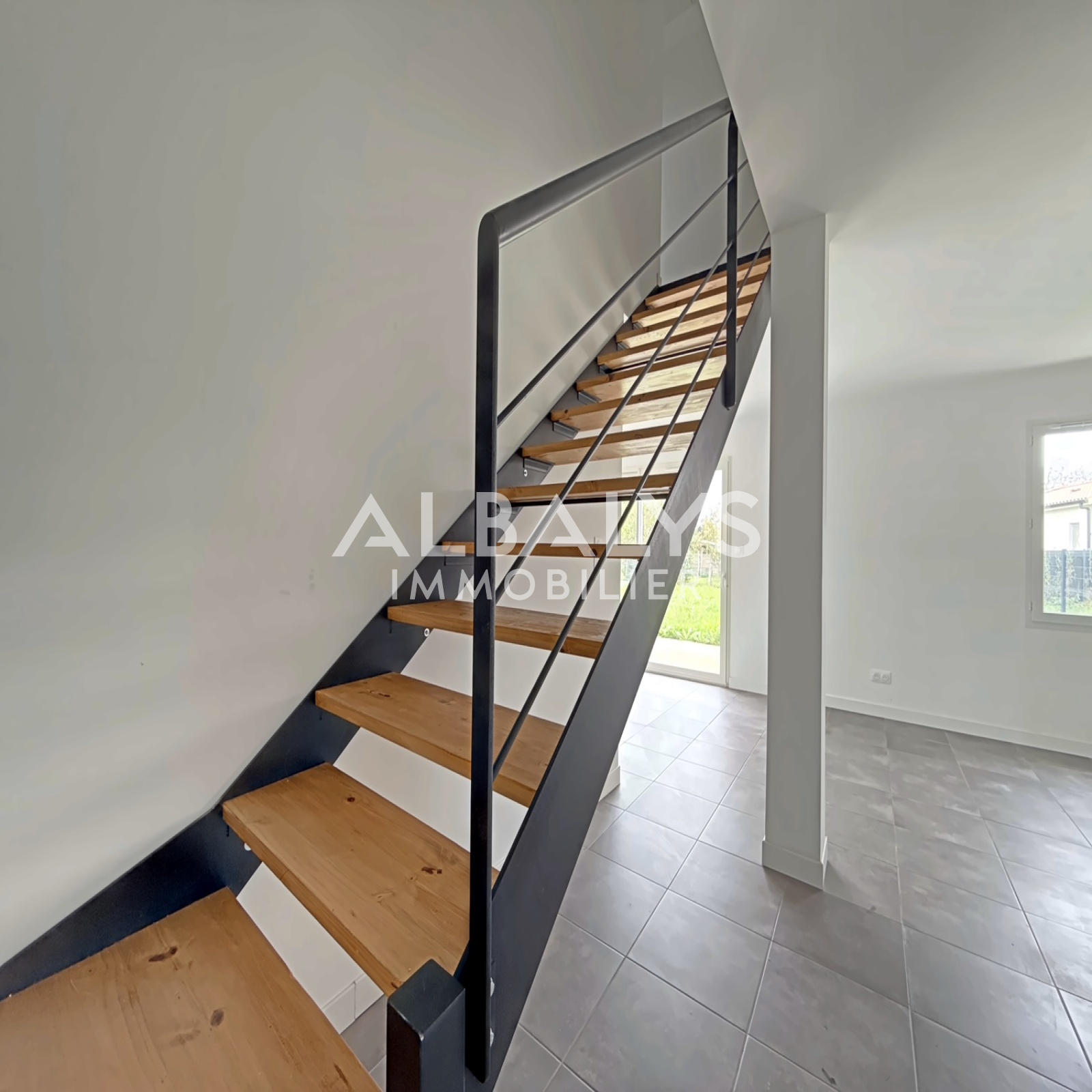 Elle se compose au rez-de-chaussée d’un séjour lumineux avec cuisine ouverte, d’une buanderie et d’un WC.