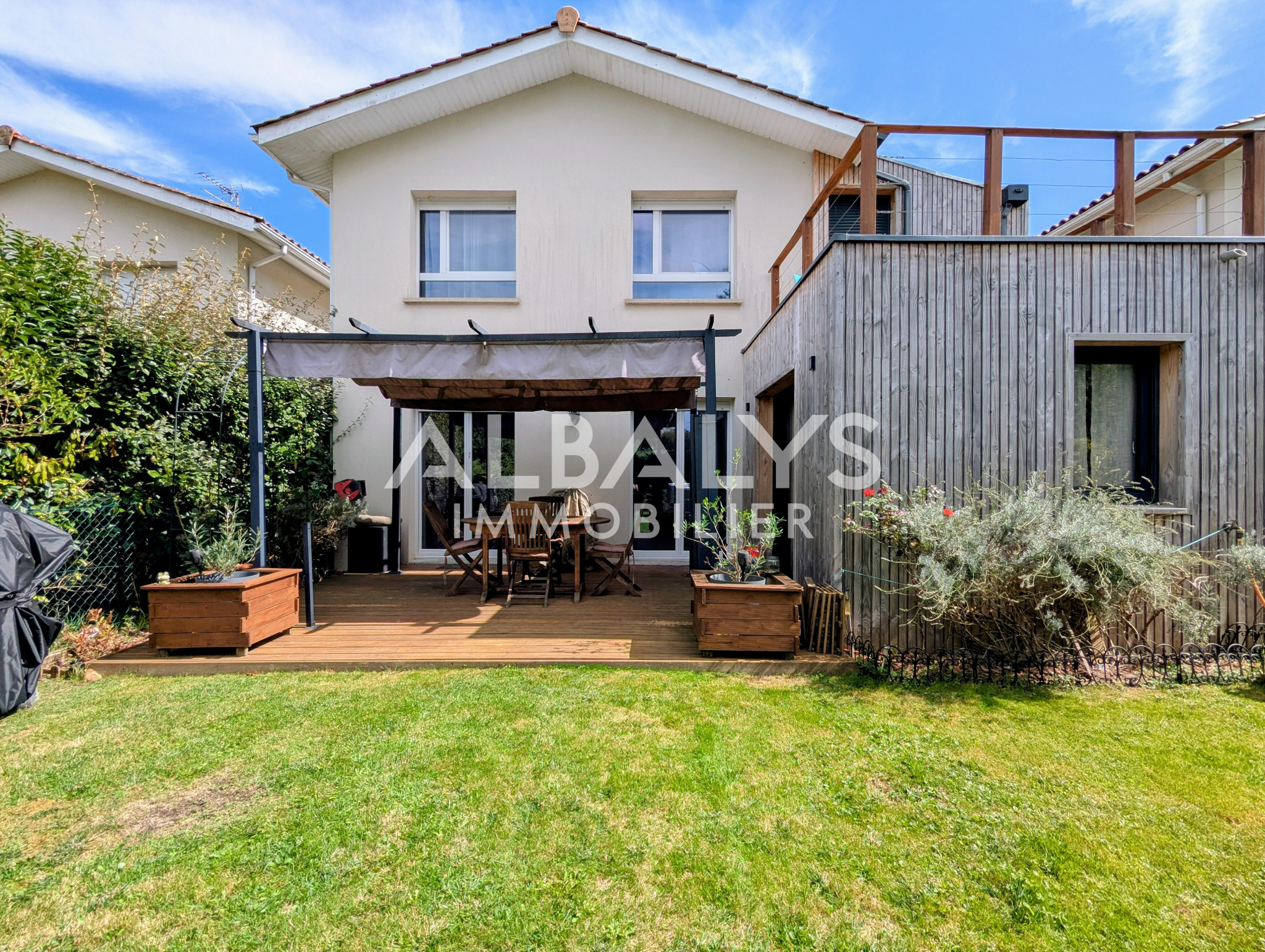À l’extérieur, vous profiterez d’un jardin intimiste joliment aménagé, agrémenté d’une piscine idéale pour les beaux jours.